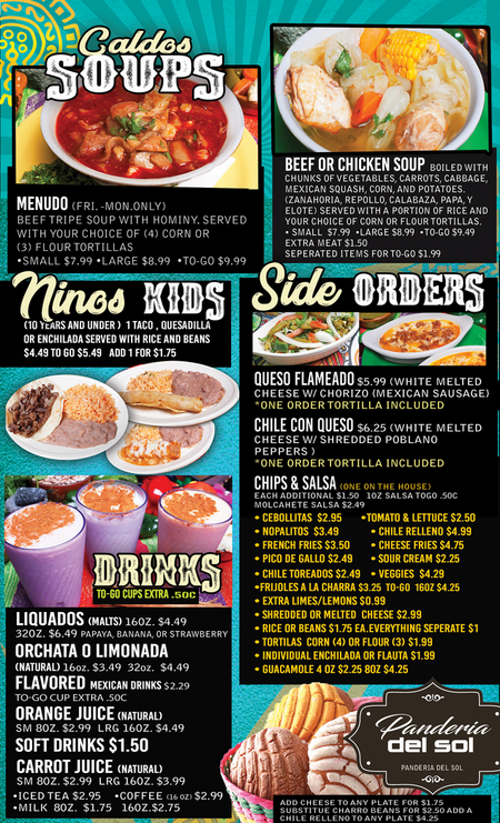 Menus El Sol De Mexico Bar Grill